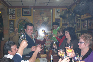Asistieron muchos socios acompañados de sus respectivas esposas, que a la hora de comer tuvieron que elegir entre pierna de cordero o lubina. No faltaron los villancicos e incluso hubo quien se arrancó por fandangos.