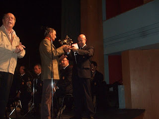 Inicialmente estaba previsto que el concierto tuviera lugar en la Plaza de Santa María, pero debido a las inclemencias del tiempo se decidió trasladar la audición a las tablas del Teatro Darymelia, siendo una decisión acertada pues se ganó en calidad acústica y comodidad.