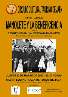 El Círculo Cultural Taurino de Jaén ha programado una charla coloquio como acto previo al XVII Festival Taurino a beneficio de la AECC de Jaén.