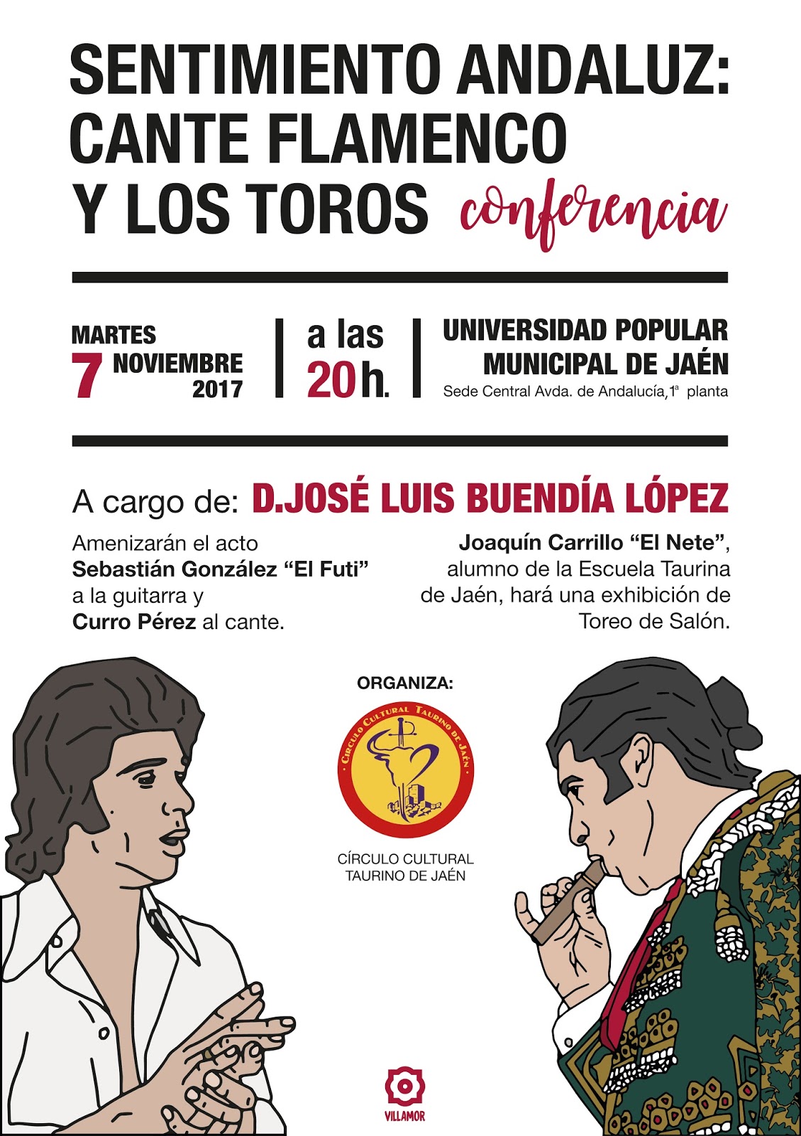 Será en la Universidad Popular Municipal de Jaén (Avda. de Andalucía, 47 2º planta) en la que intervendrán un guitarrista flamenco y un cantaor, así como nos deleitará con una exhibición de toreo de salón Joaquín Carrillo «El Nete» alumno de la escuela de tauromaquia de Jaén.