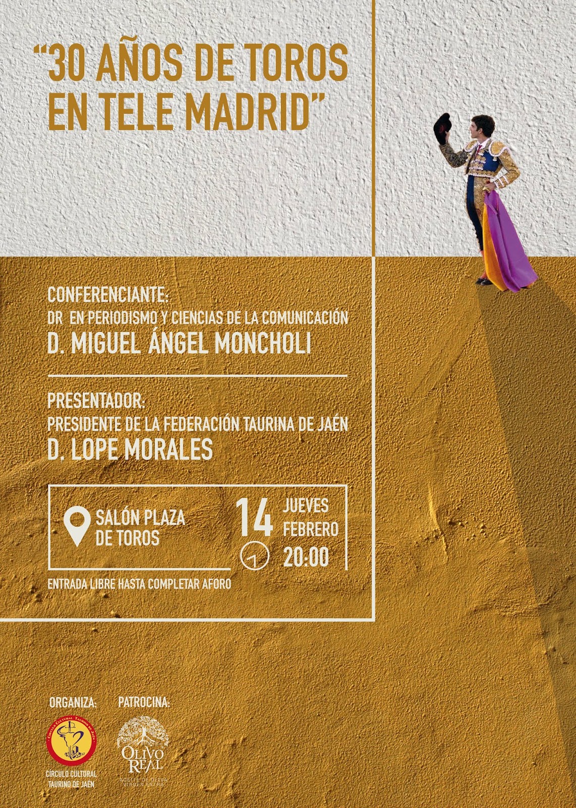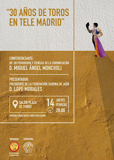El próximo jueves 14 de febrero hemos organizado una conferencia en la que el acreditado crítico y comentarista taurino D. Miguel Ángel Moncholi nos hablará sobre «30 años de toros en Tele Madrid».