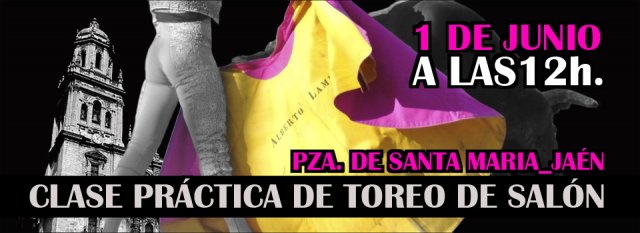 La empresa RB Producciones Taurinas ha programado para el 1 de junio a las 12.00 horas una clase práctica de torero de salón en la Plaza de Santa María, explanada de la Catedral, de la mano del matador de toros jiennense Alberto Lamelas, donde estarán presentes además la Escuela Cultural de Tauromaquia de Jaén, los novilleros que actuarán el 2 de junio en el Coso de la Alameda en la primera novillada del XIX Certamen de Escuelas Taurinas Andaluzas televisadas por Canal Sur Televisión y Aficionados Prácticos de Jaén, algo que a muchos les sorprenderá ver  por el escenario pero tan corriente tiempo atrás, ya que los festejos taurinos se celebraban en ‘la plaza del pueblo’.
