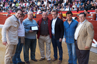 La entrega de la placa se hizo al finalizar el paseillo de la novillada sin picadores, organizada por la Escuela, el 14 de octubre de 2.012 en el Coso de la Alameda.